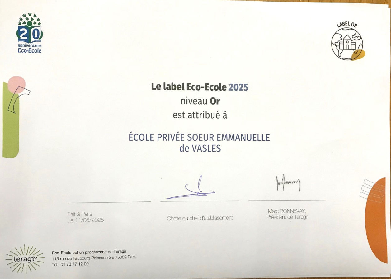 Nous avons le plaisir de vous informer que notre école a été une nouvelle fois labellisée éco-école, niveau or.