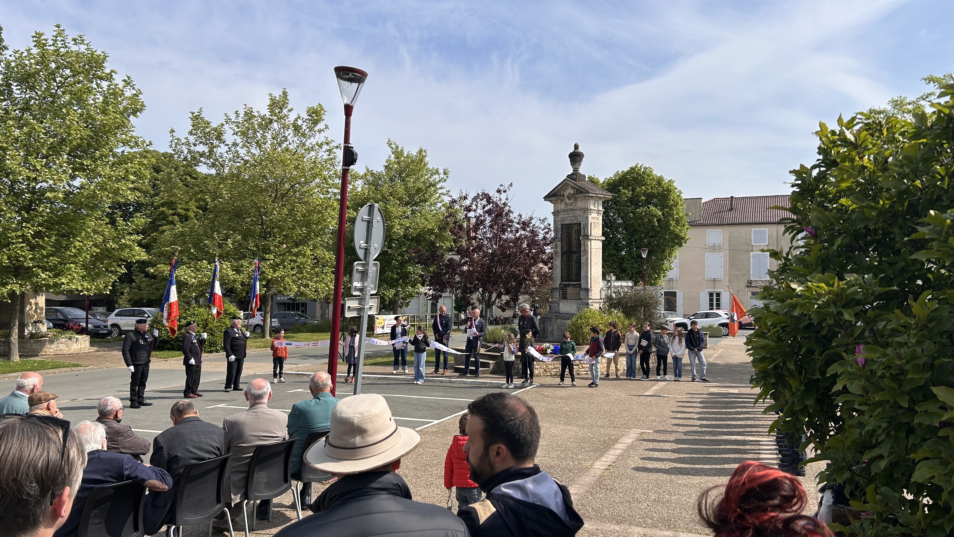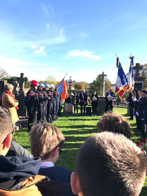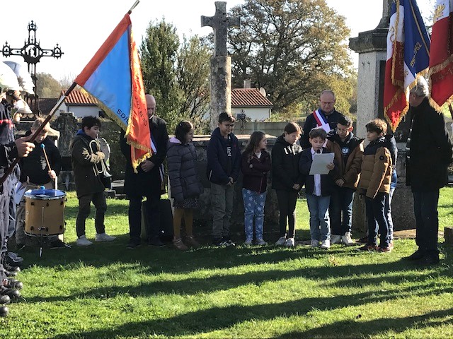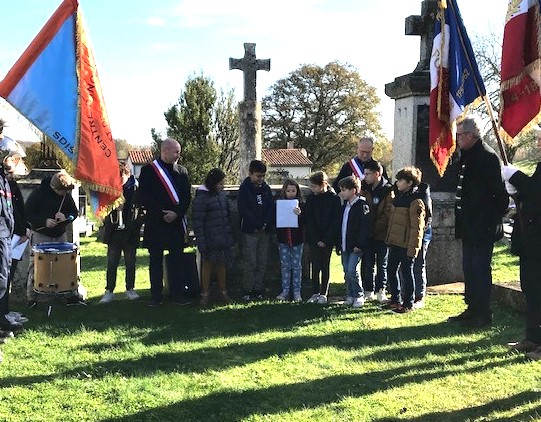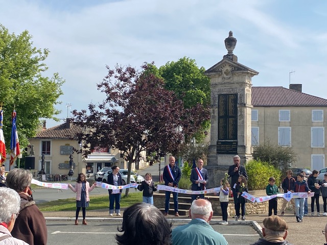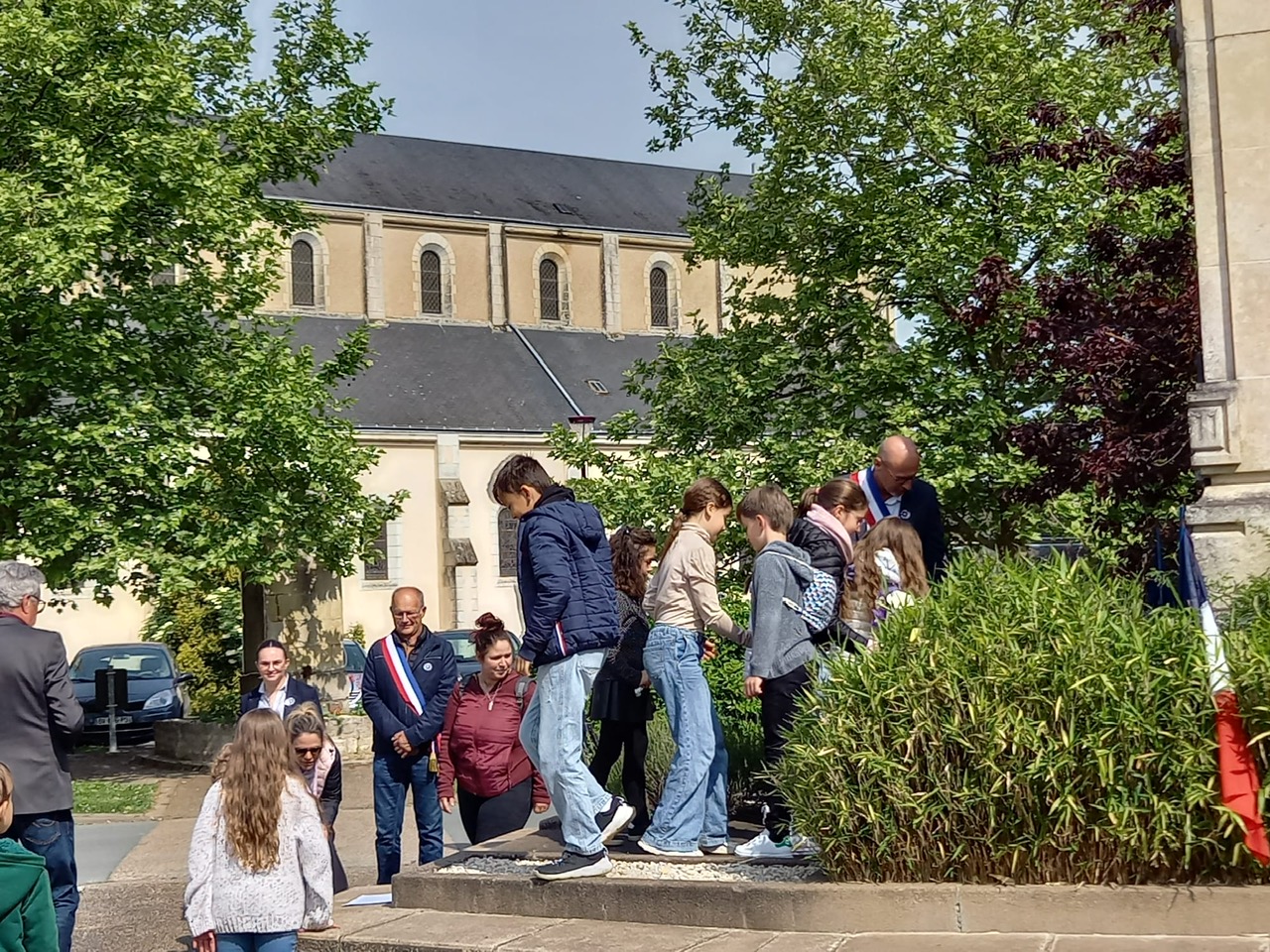 Les élèves ont déposé des fleurs au pied du monument des morts.