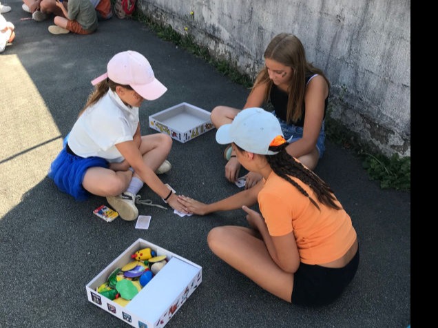 Les élèves de CM et Noémie lisent ce conte à l'assemblée.